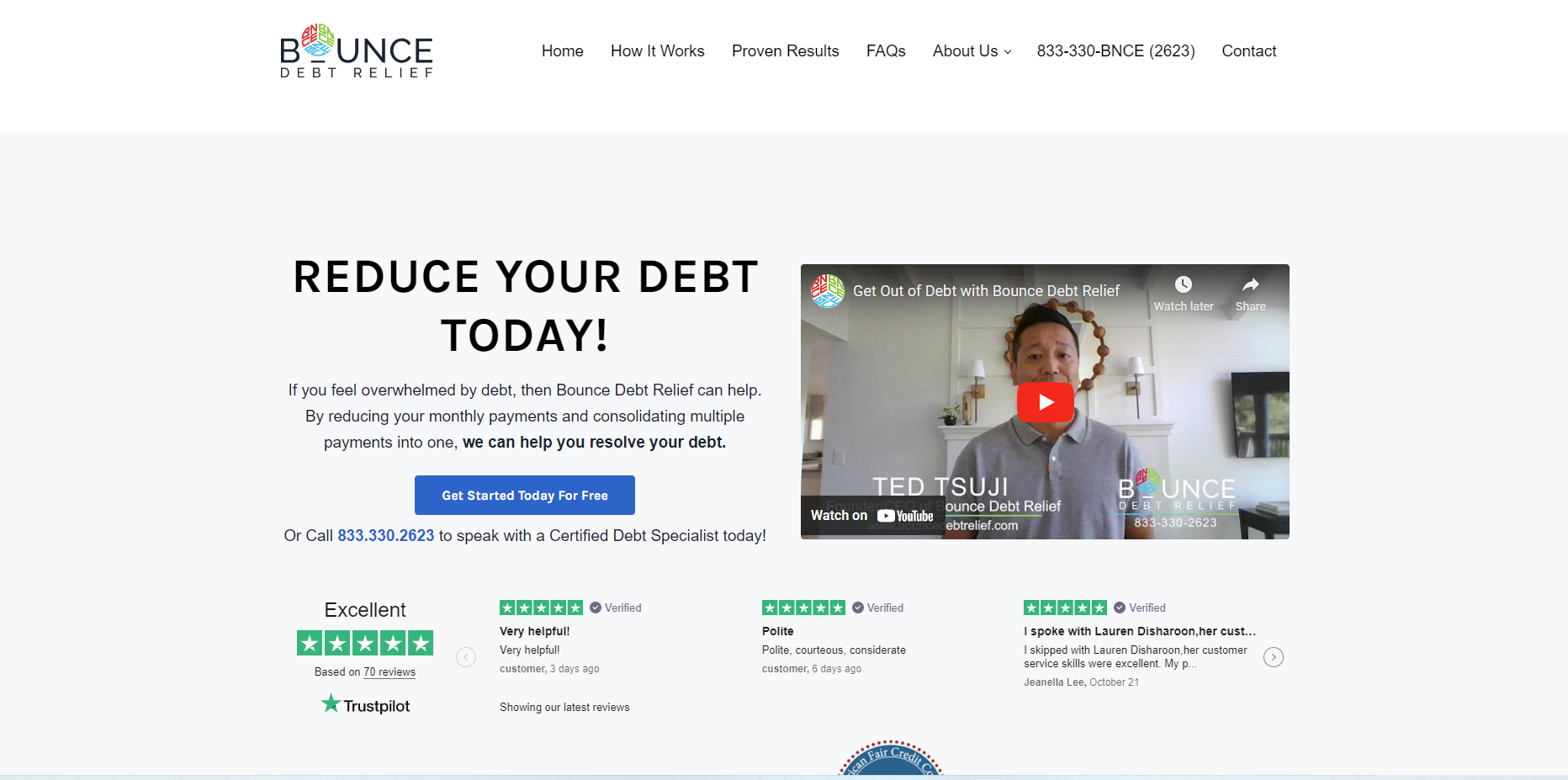 As its name suggests, Bounce Debt Relief is a company that offers debt relief services including debt settlement, debt consolidation, debt management, and credit counseling.